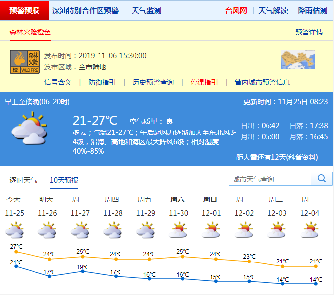 見圳客戶端、深圳新聞網(wǎng)2019年11月25日訊 深圳市氣象臺預(yù)計(jì),本周冷空氣影響頻繁,我市氣溫將逐漸下降。