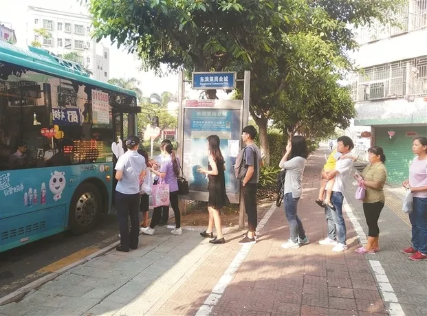 深圳有很多公交站臺(tái)雖然面對(duì)人多車少的現(xiàn)實(shí),但乘車人自覺排隊(duì),按秩序上車,在客觀上加快了公交車周轉(zhuǎn)的速度。有著“文明城市”稱號(hào)的深圳,在最易擁擠的地方,體現(xiàn)出了文明。