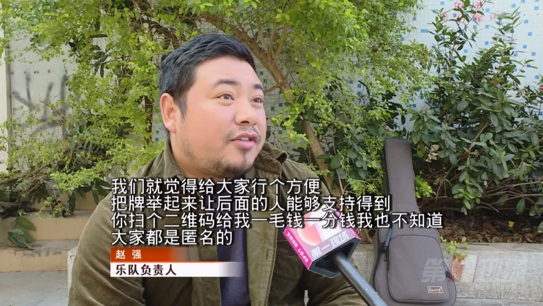 上周末,恰逢蓮花山簕杜鵑展,廣場(chǎng)人流量猛增,觀看樂(lè)隊(duì)演出的市民圍了好幾層,為了方便后排市民打賞,一名銀河樂(lè)隊(duì)的成員就把原本放在地上的二維碼拿在手上,在觀眾前繞了一圈,沒(méi)有強(qiáng)制索要打賞的意思。