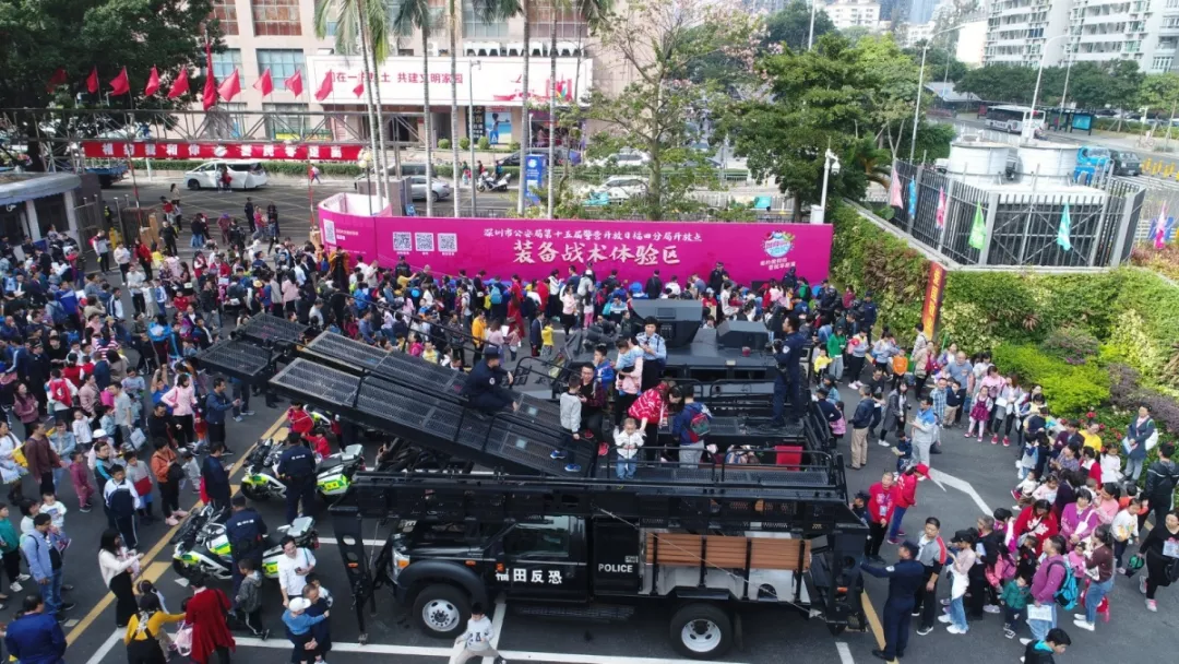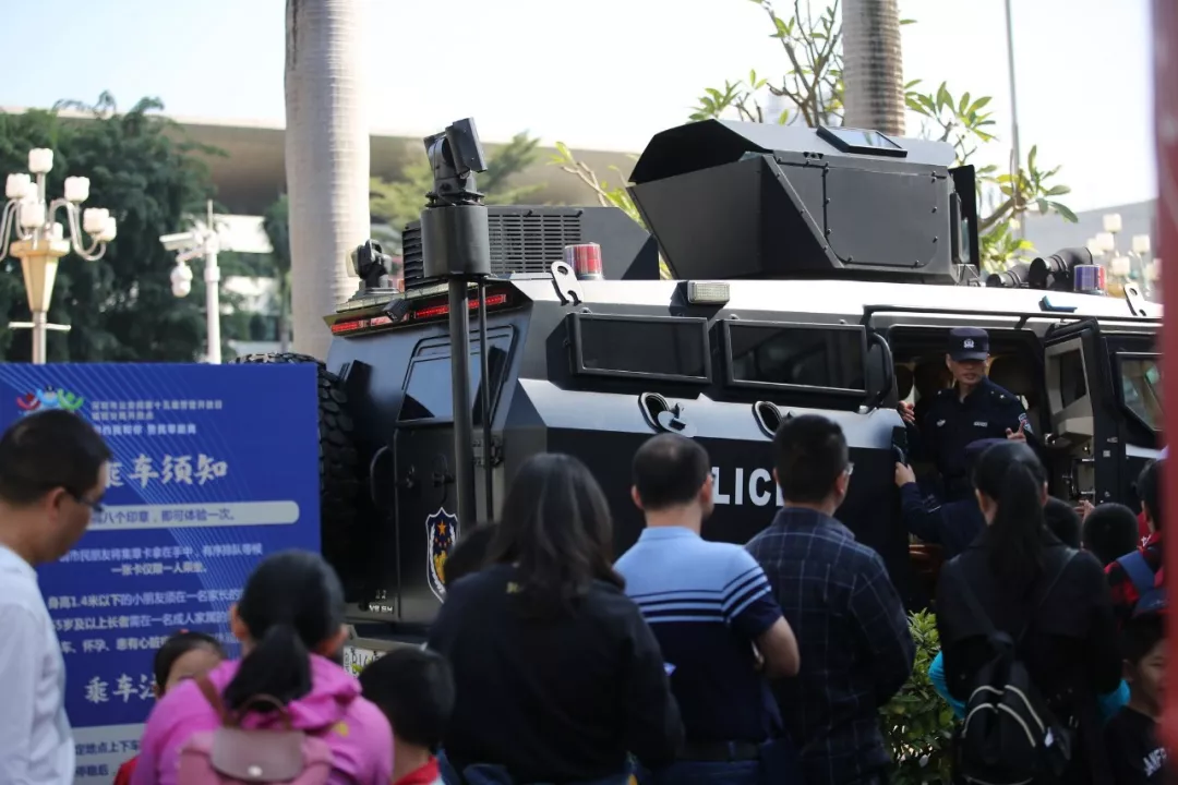 防暴頭盔、防爆盾牌、槍支警械、無人機、反恐車酷勁兒十足。大家興致勃勃地穿戴警用裝備,過一把警察癮,圓一回警察夢,做“圳”里最靚的仔!
