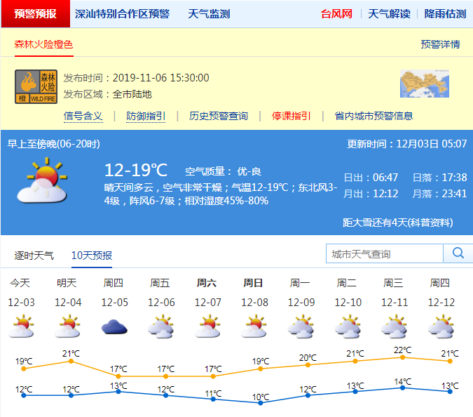 見圳客戶端·深圳新聞網(wǎng)2019年12月3日訊 近兩日,深圳風(fēng)力清勁,不少市民反饋“終于有個(gè)秋天的樣子”。記者從市氣象臺(tái)獲悉,預(yù)計(jì)3日晴天間多云,空氣非常干燥,氣溫12℃至19℃,陣風(fēng)6級(jí)至7級(jí)。4日氣溫短暫回升,氣溫12℃至21℃。5日至7日冷空氣繼續(xù)補(bǔ)充影響,風(fēng)力再次加大,氣溫進(jìn)一步下降。其中,5日氣溫13℃至17℃,6日氣溫12℃至17℃,7日氣溫11℃至17℃。