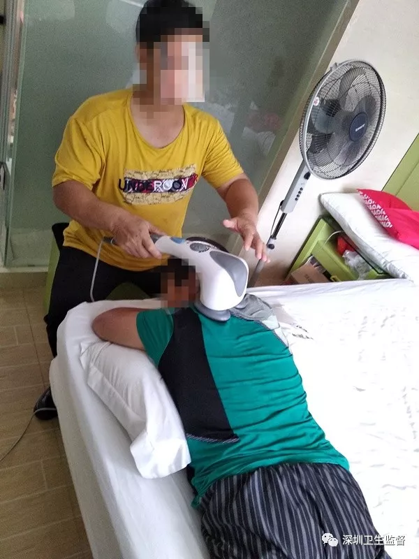 接到投訴后,執(zhí)法人員前往該酒店客房進(jìn)行檢查,在該酒店8228房?jī)?nèi),發(fā)現(xiàn)一名中年男子鄭某正在給一名女子進(jìn)行按摩治療。