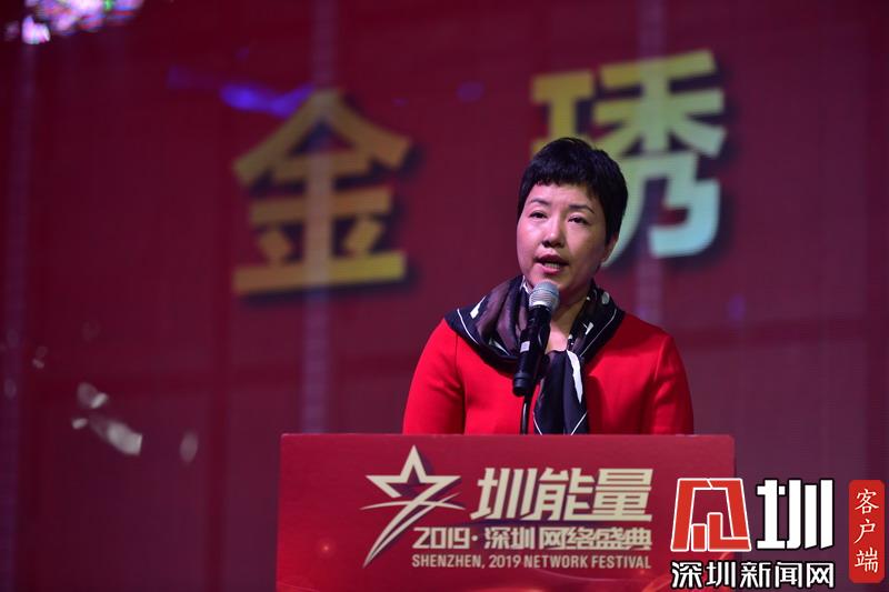 市網(wǎng)信辦副主任、市互聯(lián)網(wǎng)行業(yè)聯(lián)合會(huì)會(huì)長(zhǎng)金琇致辭。見圳客戶端、深圳新聞網(wǎng)記者陳飛 攝