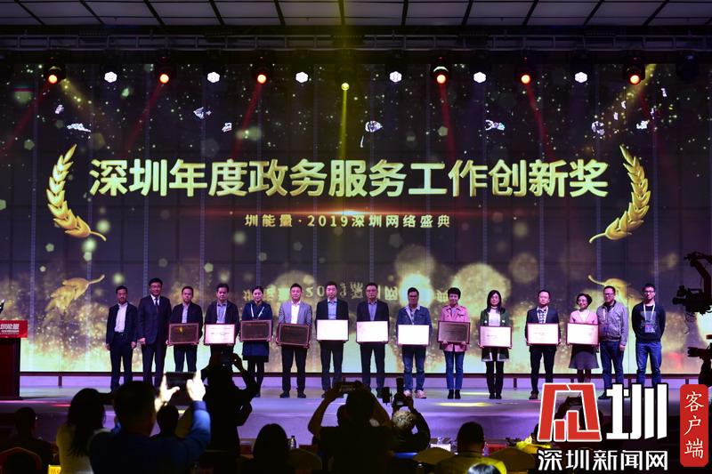 深圳年度政務(wù)服務(wù)工作創(chuàng)新獎獲獎單位代表合影。