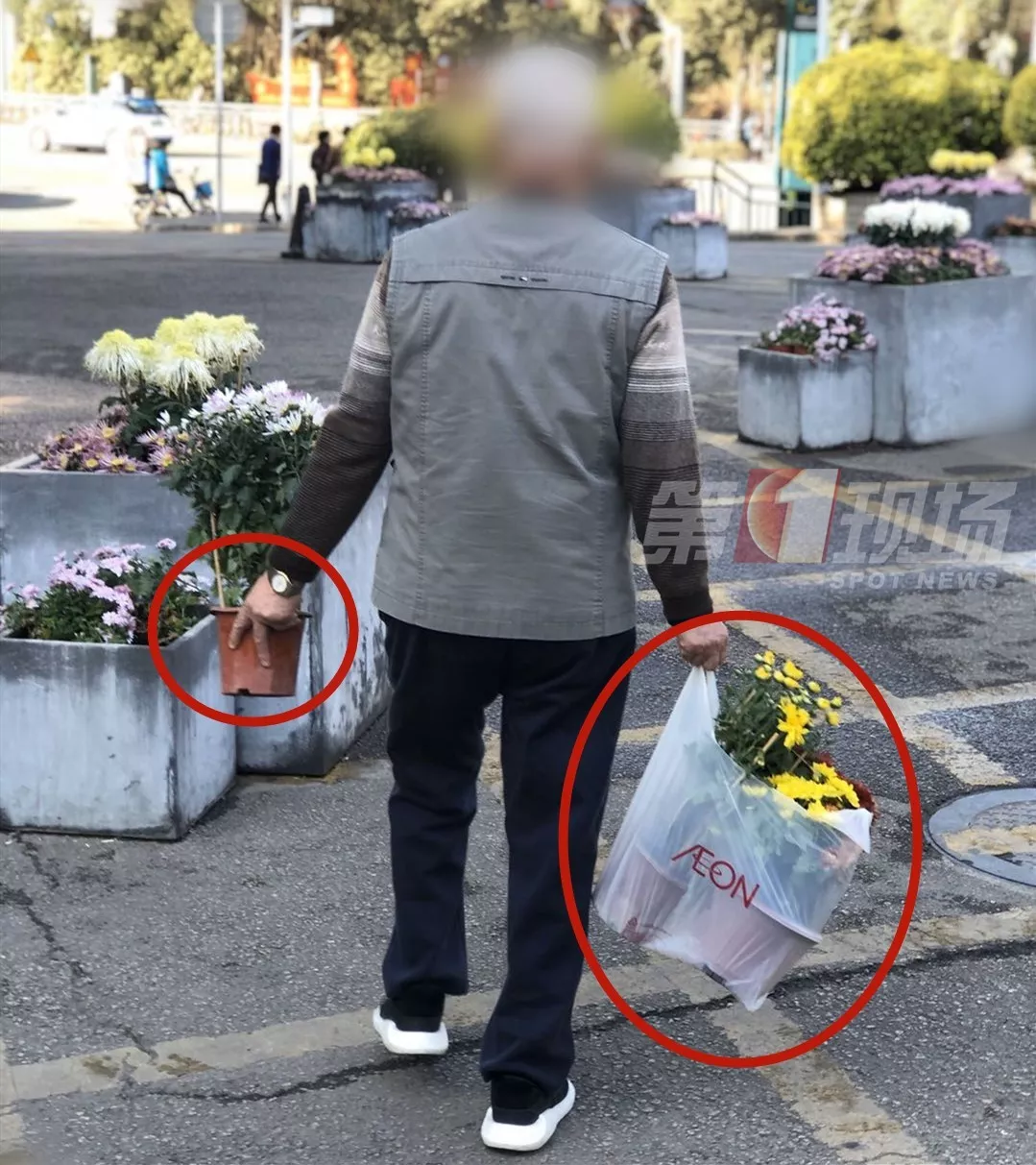 市民光天化日之下“偷花踩花”