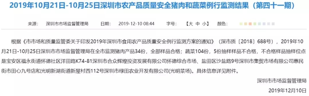 豬肉和蔬菜例行監(jiān)測結(jié)果