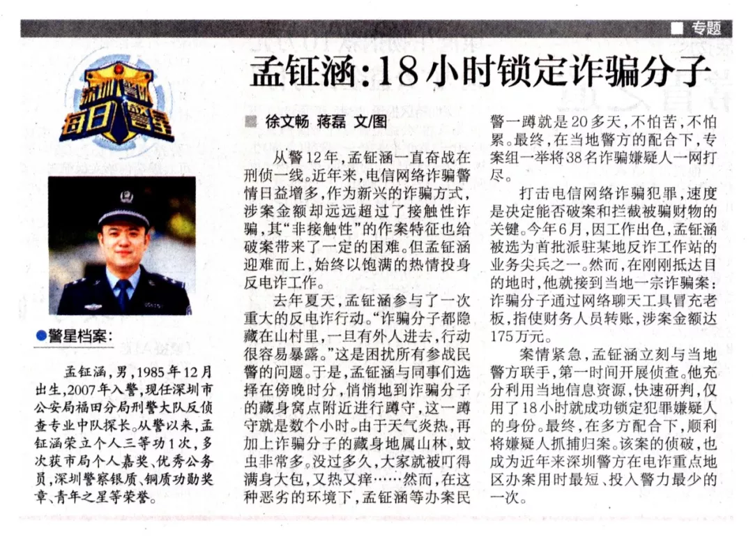 每日警星 | 孟鉦涵:18小時(shí)鎖定詐騙分子