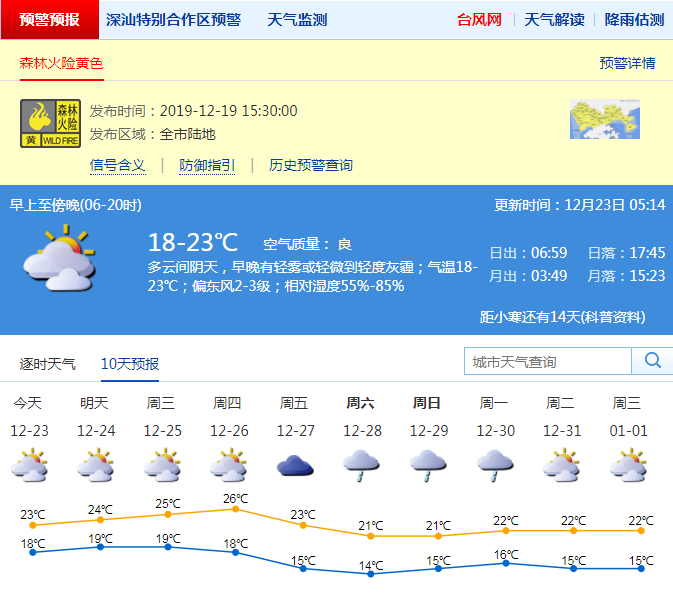 深圳方面,預(yù)計周一至周四我市多云為主,早晚有輕霧或霾,氣溫緩慢回升,周一氣溫18-23℃。
