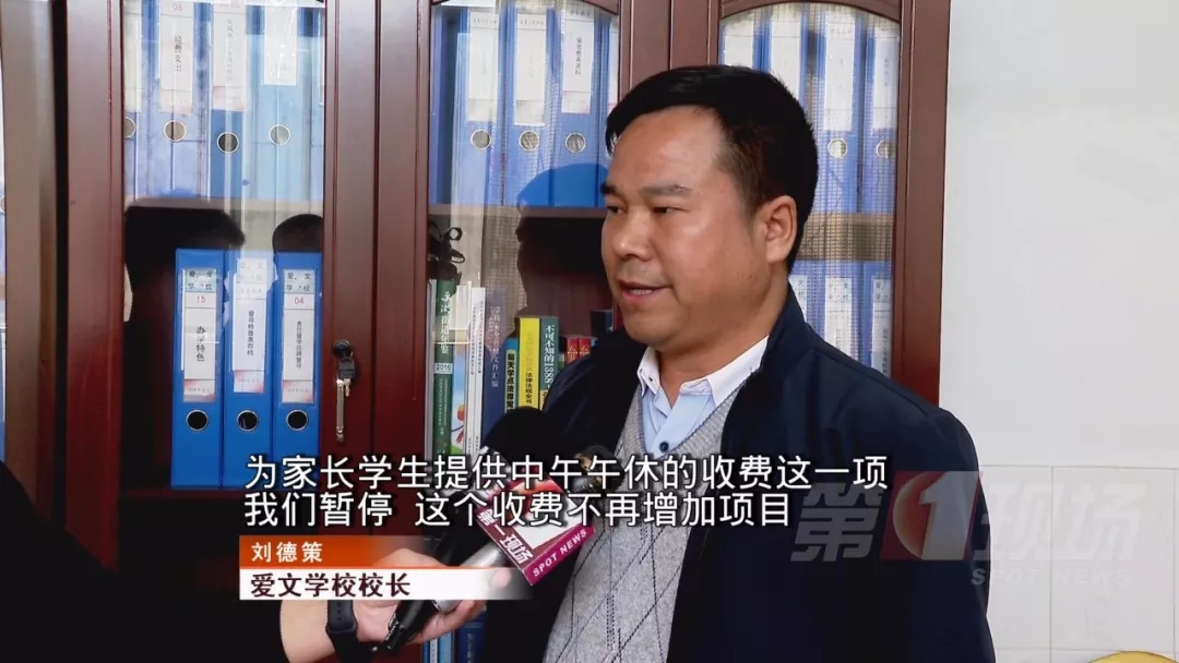 愛文學校校長劉德策介紹,春季學期為家長學生提供了中午午休的收費這一項,但現(xiàn)在已暫停這個收費項目的計劃。而針對不交費就不能在校午休的說法,這名負責人表示并不知情。