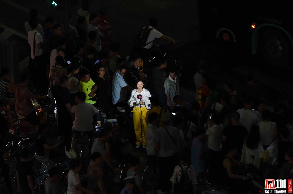 2019年4月23日,深南東路,深圳交警開展和外賣小哥角色互換的活動(dòng),美團(tuán)外賣小哥趙春曉正在路口執(zhí)勤。