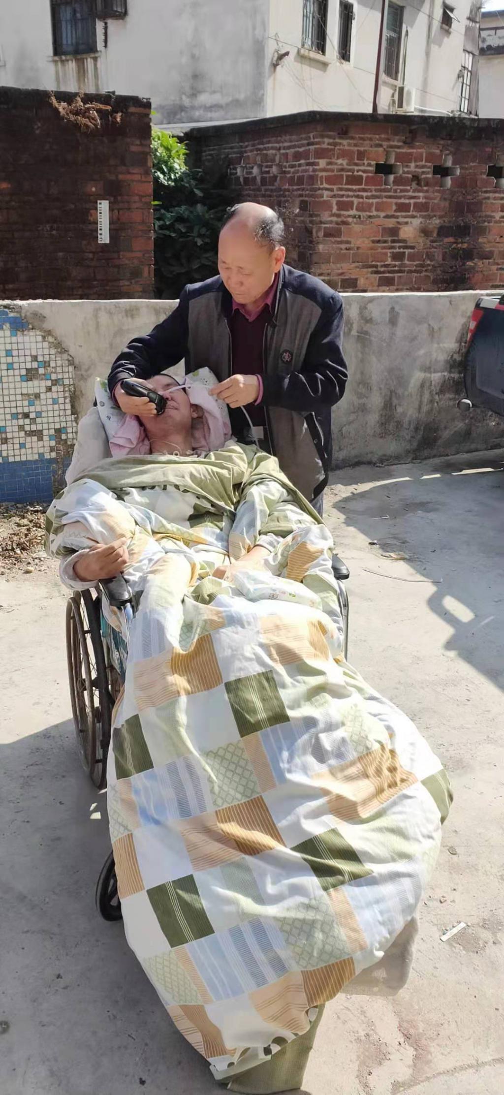 之前,劉林沒有想過照顧一個(gè)植物人這么難。病人吃喝拉撒,都成了他的操心事。因?yàn)橹参锶俗约撼圆涣藮|西,劉林只能把飯菜做成流食,一天喂三頓;每隔2個(gè)小時(shí),劉林就要幫女婿翻身、按摩、拍背,防止身體腐爛。除此之外,劉林還要幫女婿端屎端尿,每天幫忙洗澡、擦身、換洗衣服和床單……在劉林的悉心照料下,劉建榮沒有長(zhǎng)過褥瘡,房間也是干干凈凈的,少有異味。