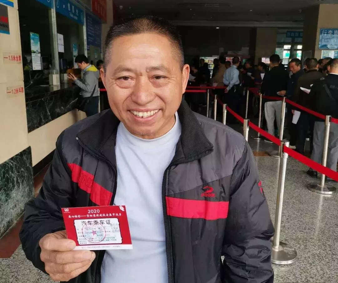 來自四川省南充市的魏先生一大早便來到取票現(xiàn)場,成功取到票的他,滿臉掛著笑容。據(jù)魏先生介紹,1992年他來深圳務工,平時靠打散工,收入不高,上次回家已經(jīng)是6年前了,他無比想念家里的老母親和三個小孩,無奈每年春節(jié)都搶不到票,今年,在老鄉(xiāng)的告知下得知深圳福彩這個公益活動,總算是買到了回家的車票?!拔也欢W(wǎng)絡買票,老鄉(xiāng)拿我的手機幫忙操作,今年終于可以回家了,很開心!而且汽車直接送到家附近,不需要轉(zhuǎn)車,很方便,感謝福彩!”