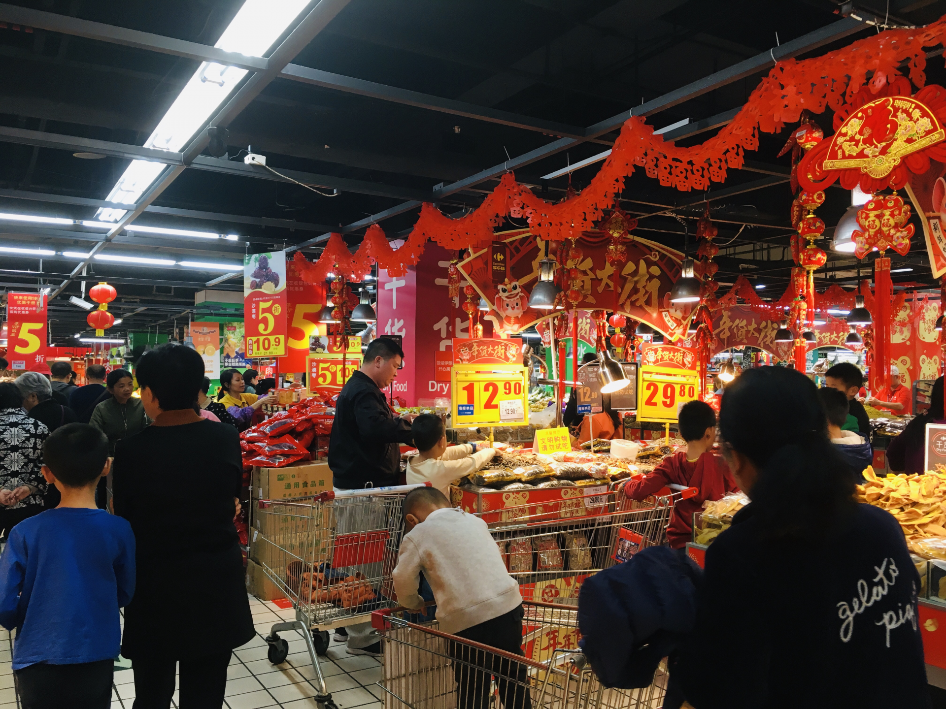 深圳特區(qū)報(bào)2020年1月7日訊 俗話說(shuō),過(guò)了臘八就是年。年貨市場(chǎng)向來(lái)是商家們必爭(zhēng)之地。連日來(lái),記者走訪平湖海吉星、福田農(nóng)批市場(chǎng)及各大商超了解到,商家們正摩拳擦掌迎戰(zhàn)一年一度最繁忙的春節(jié)銷售季,針對(duì)市民春節(jié)消費(fèi)需求推出了豐富的年貨商品。各大商超內(nèi)年味漸濃,元旦期間已有不少市民趁著優(yōu)惠促銷選購(gòu)所需商品。