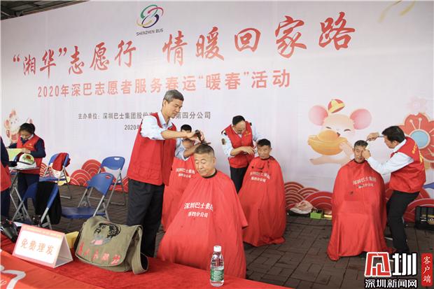 深圳巴士集團志愿者為春運返鄉(xiāng)旅客理發(fā)。