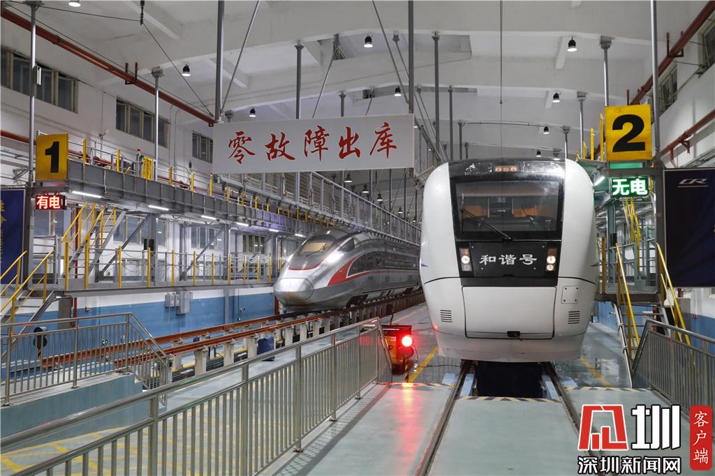 新春走基層|探秘春運(yùn)里的深圳動(dòng)車(chē)所 高鐵列車(chē)排隊(duì)"體檢""洗澡"