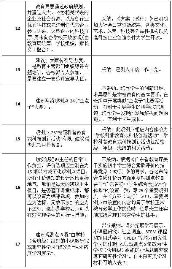 原標(biāo)題:最新進(jìn)展!深圳初中綜評新方案征集到34類建議,其中19類被采納或部分采納