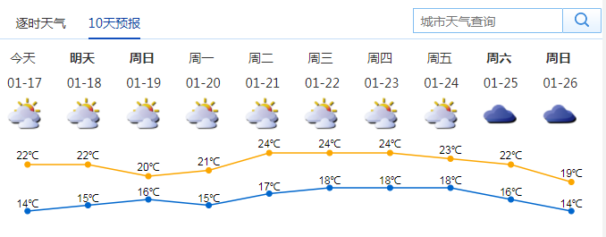 最低氣溫降至12-13℃,伴有小雨和霧;其余時(shí)段多云為主,可見(jiàn)陽(yáng)光。