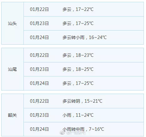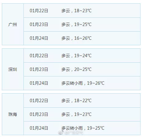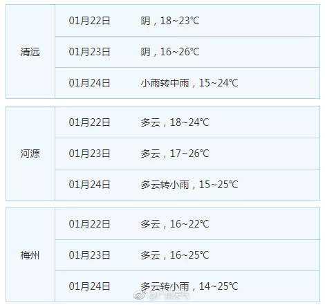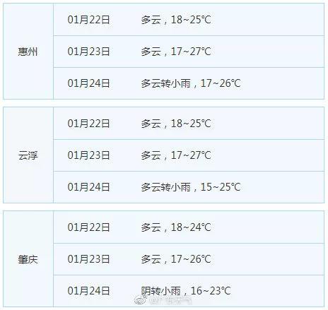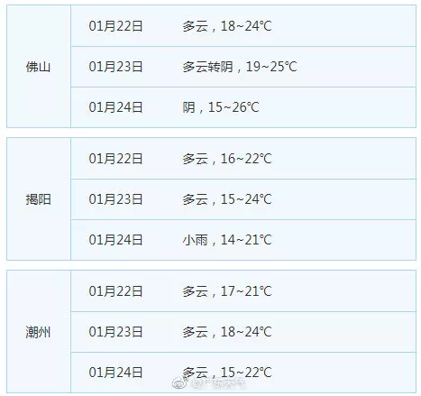廣東21個地市的天氣預告