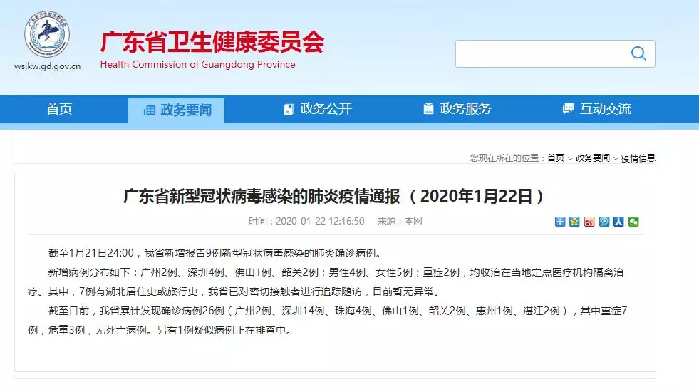 廣東累計(jì)發(fā)現(xiàn)“新型肺炎”確診病例26例,其中重癥7例,危重3例,無(wú)死亡病例。