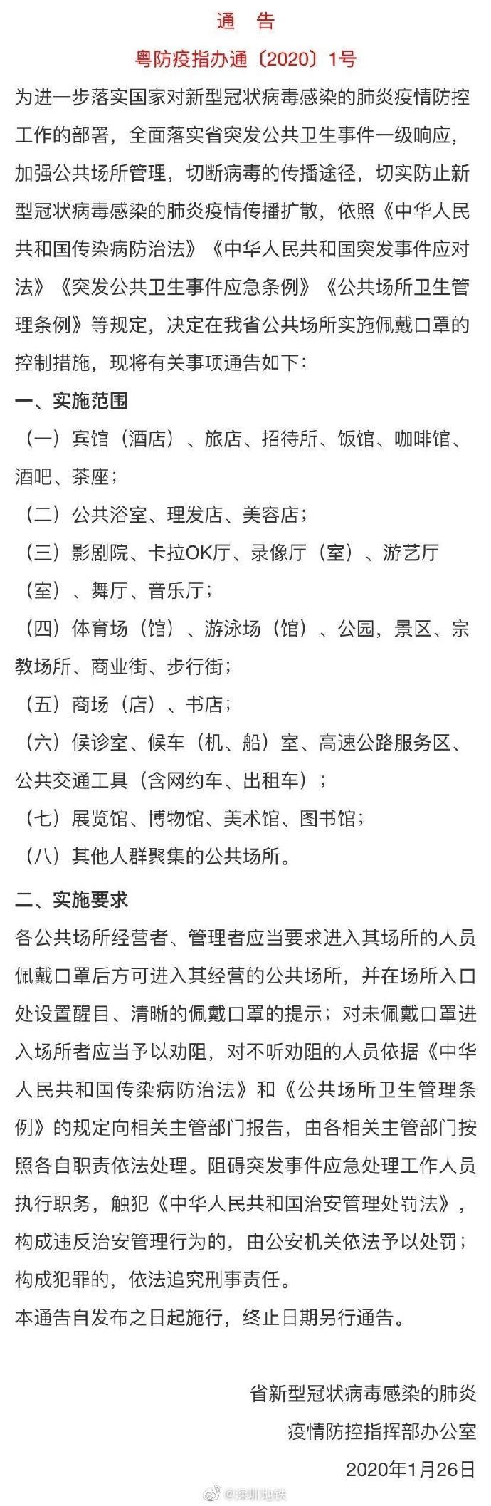 見圳客戶端·深圳新聞網(wǎng)2020年1月27日訊 深圳地鐵官方微博1月26日發(fā)布運營公告:根據(jù)粵防疫指辦發(fā)布的〔2020〕1號通告的相關要求,為全面落實省突發(fā)公共衛(wèi)生事件一級響應,加強地鐵公共場所管理,切斷病毒的傳播途徑,即日起,凡進入地鐵車范圍內必須全程佩戴口罩,未佩戴口罩進入者將被勸阻離開。對不聽勸阻且情節(jié)嚴重者,將依法移交公安機關進一步處置。