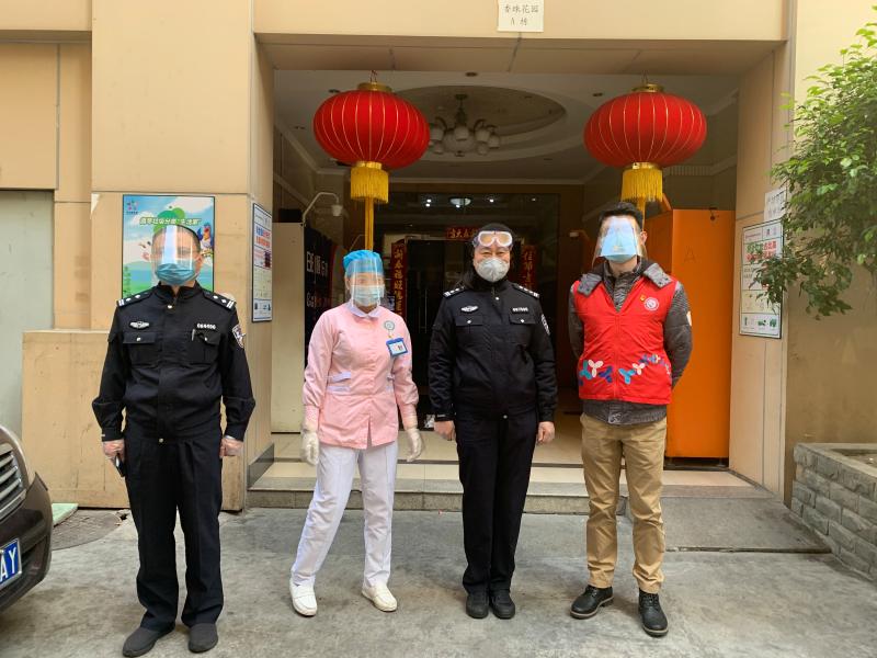 香蜜湖街道自制簡易護(hù)目鏡,供防控人員使用。