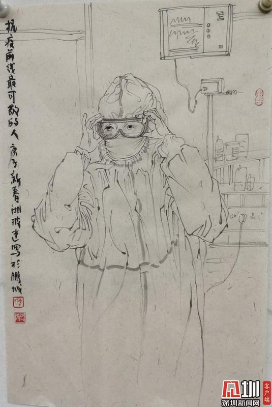 為向這些逆行者致敬,近日,廣東省美術(shù)家協(xié)會(huì)副主席、深圳市美協(xié)主席、深圳市關(guān)山月美術(shù)館館長陳湘波創(chuàng)作了一批精彩的白描速寫和書法作品,希望能以此鼓舞人心,提振廣大市民戰(zhàn)勝疫情的信心。