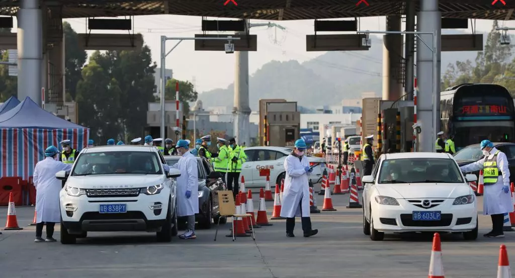 執(zhí)勤民警、醫(yī)務人員忙碌而有序地進行體溫檢查。