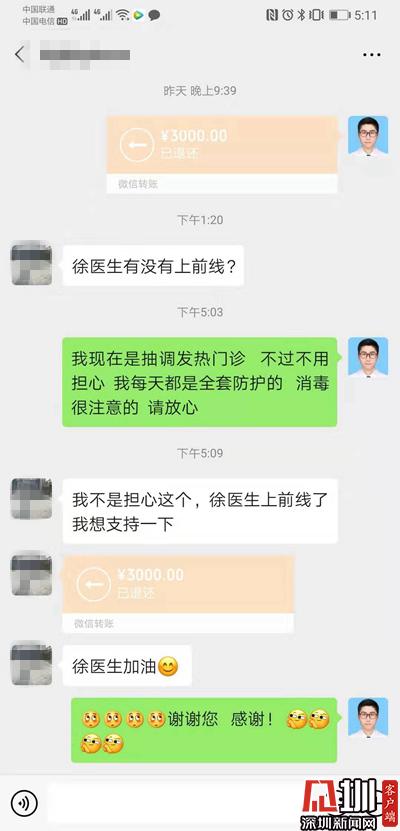 2日上午,寶安中醫(yī)院(集團(tuán))隔離病房工作的徐醫(yī)生,遇到了令他十分感動(dòng)的事。他通過(guò)微信向房東交房租,房東問(wèn)他是不是在防控前線工作,徐醫(yī)生以為房東怕傳染而嫌棄他,連忙向房東解釋自己做好了防護(hù)消毒,不用擔(dān)心,沒(méi)想到房東直接把房租退了回去,表示要支持徐醫(yī)生在前線工作,真是暖心啊!
