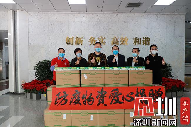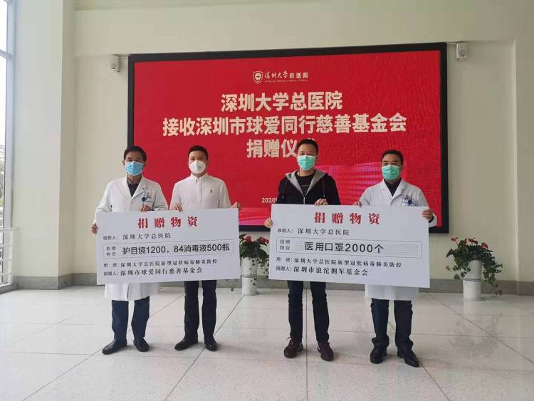 向深圳大學(xué)總醫(yī)院捐贈(zèng)消毒藥水和口罩。