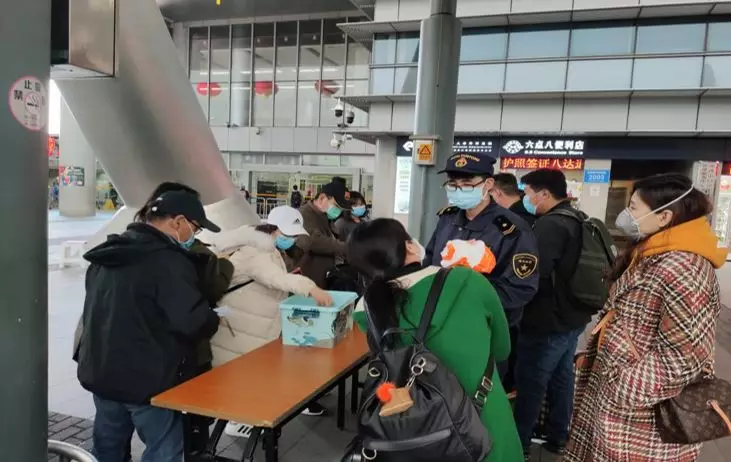口岸工作人員正在對來往旅客進行疫情防控知識宣傳