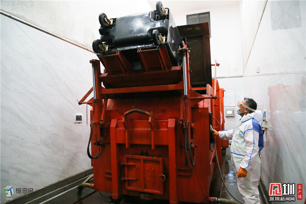 現(xiàn)代化城市生活固然便捷,但是也制造巨量的生活垃圾。垃圾清運(yùn)人員凌晨3點(diǎn)半起床后開始準(zhǔn)備一天的工作。這段時(shí)間,轉(zhuǎn)運(yùn)站配置1:250的高濃度消毒液,一桶消毒液夠用一個(gè)垃圾轉(zhuǎn)運(yùn)站。記者看到,電動(dòng)垃圾轉(zhuǎn)運(yùn)車上的四個(gè)環(huán)衛(wèi)消殺工作人員穿著厚厚的白藍(lán)色隔離服,全副武裝迎接來自轄區(qū)源源不斷運(yùn)過來的垃圾桶,隨著垃圾轉(zhuǎn)運(yùn)車后滋滋作響的電流聲,車后的平板放下來了,一桶桶垃圾平穩(wěn)有序的拽拉進(jìn)垃圾轉(zhuǎn)運(yùn)站進(jìn)行壓縮,因工作服的關(guān)系,工作人員眼罩上經(jīng)常被一層厚厚的水霧糊上,工作期間會把手套摘除后,從手心處甩出一把把汗。