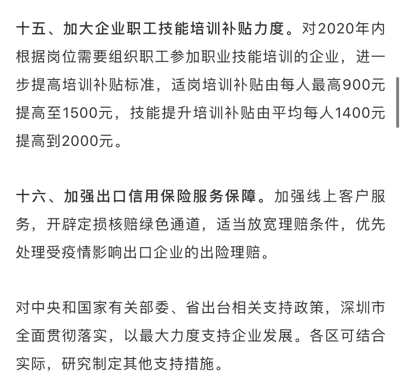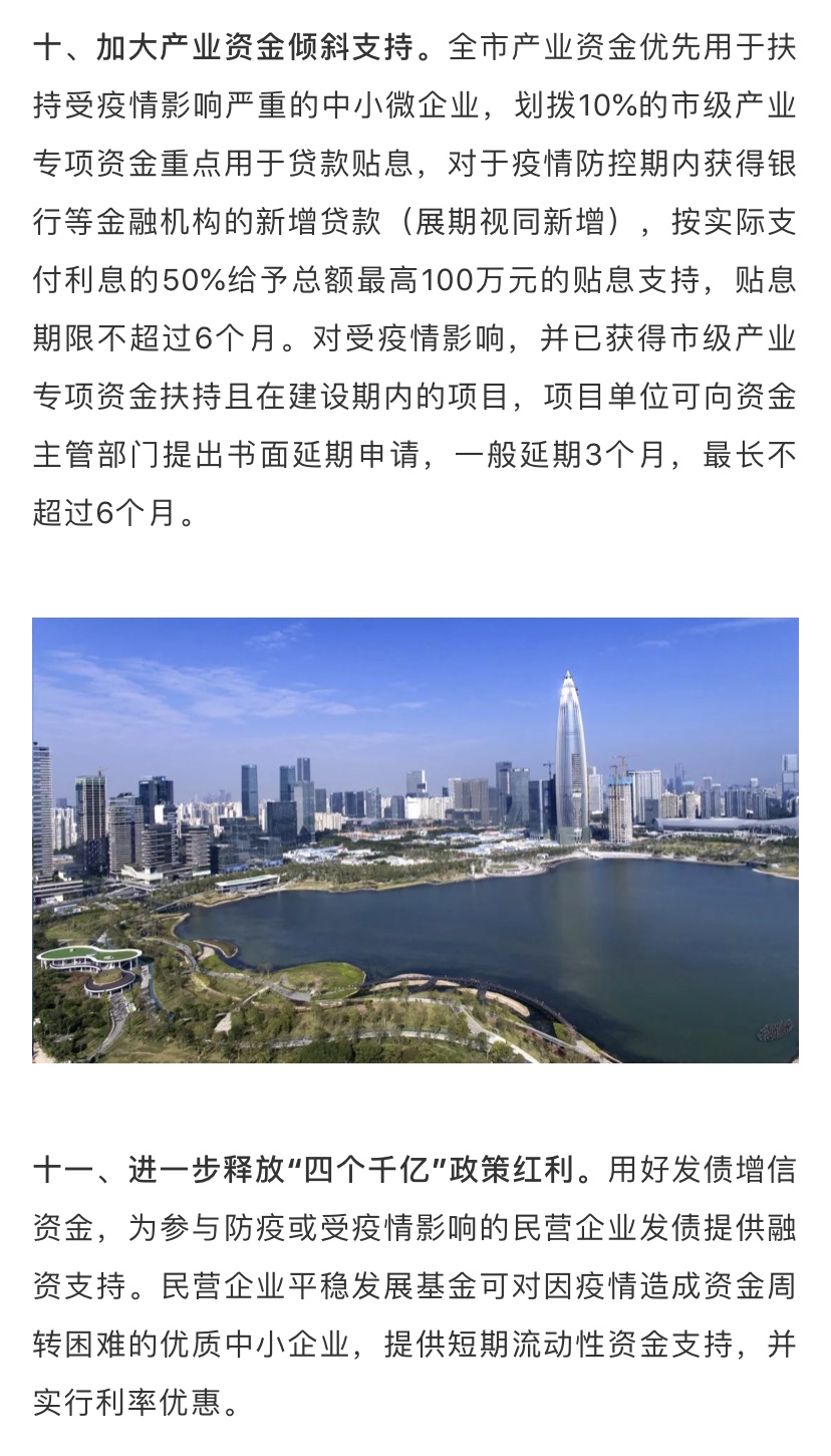 據(jù)了解,為深入貫徹落實習近平總書記關(guān)于堅決打贏疫情防控阻擊戰(zhàn)的重要指示精神,全面落實黨中央國務院和省委省政府關(guān)于做好新型冠狀病毒感染的肺炎疫情防控工作的決策部署,在做好防控工作的同時統(tǒng)籌抓好改革發(fā)展穩(wěn)定各項工作,支持企業(yè)共渡難關(guān),保障城市平穩(wěn)運行和經(jīng)濟穩(wěn)定增長,深圳市政府特制定該工作措施。