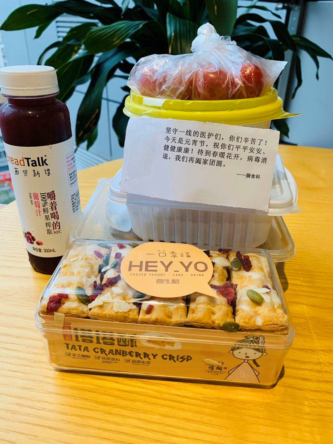 當(dāng)天中午和晚上,發(fā)熱門診、感染科、隔離病房、檢驗(yàn)科等一線的醫(yī)護(hù)人員,除了收到可口的飯菜外,還收到了一碗熱氣騰騰的湯圓。讓他們意外的是,湯圓盒上還貼了溫馨的字條,“堅(jiān)守一線的醫(yī)護(hù)們,你們辛苦了!今天是元宵節(jié),祝你們平平安安、健健康康!待到春暖花開,疫情消退,我們?cè)訇H家團(tuán)圓?!?/p>