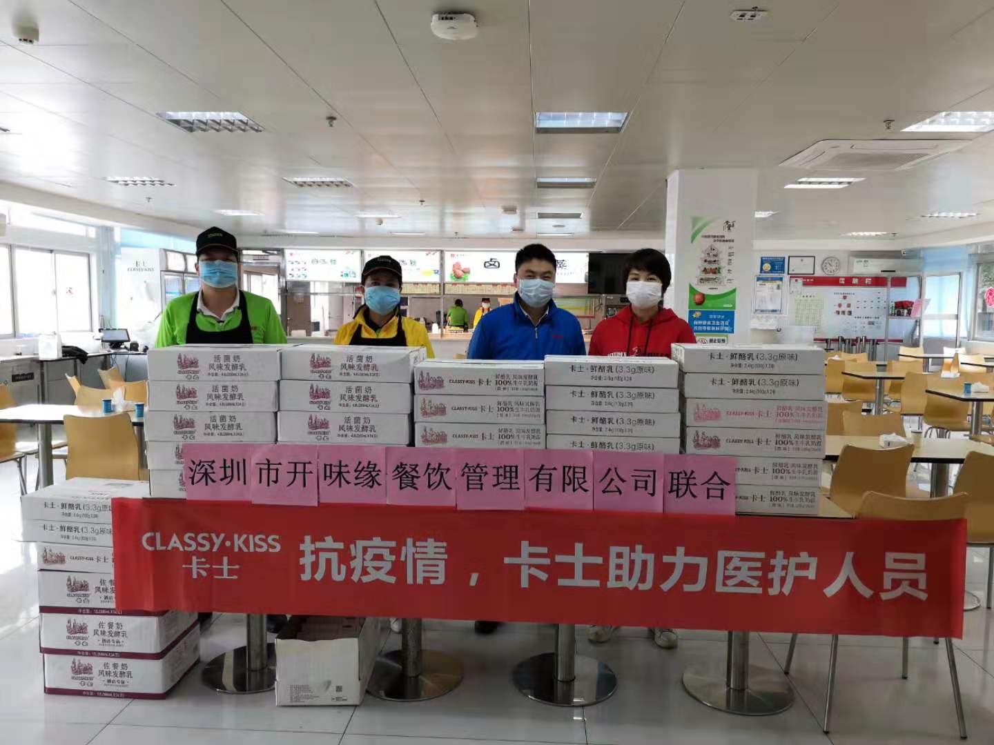 2月5日中午,卡士酸奶有限公司為當天在崗的員工送來價值2500元的卡士奶300支。