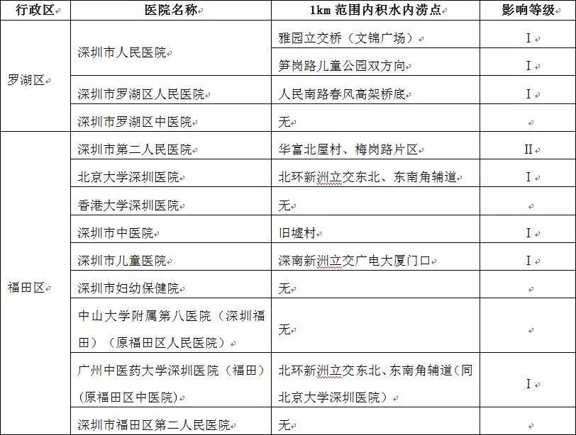 根據(jù)2019年度全市積水內(nèi)澇報送情況,深圳市水務(wù)局初步梳理出全市49家發(fā)熱門診(含1家新型冠狀病毒感染肺炎定點救治醫(yī)院)周邊積水內(nèi)澇點29處,并結(jié)合積水內(nèi)澇嚴(yán)重情況分為Ⅰ、Ⅱ、Ⅲ級。