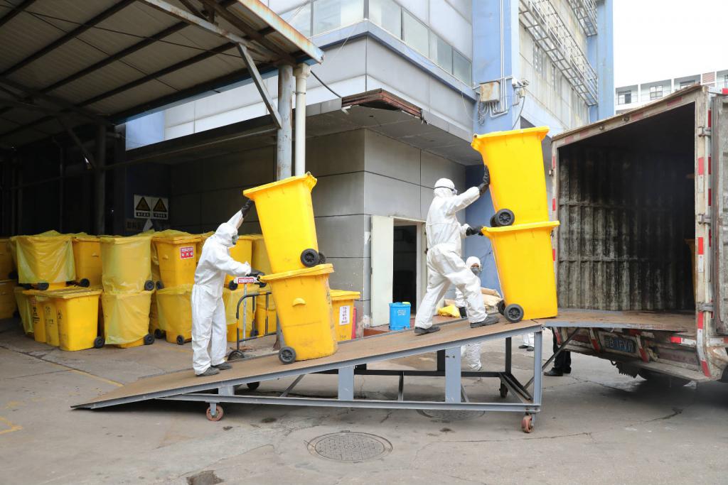 2月12日清晨,1輛廂式貨車(chē)緩緩駛進(jìn)深圳市第三人民醫(yī)院門(mén)前,2名身穿防護(hù)服的工作人員將醫(yī)院產(chǎn)生的醫(yī)療廢物用多層垃圾袋進(jìn)行密封,投入到了收集桶中。半小時(shí)后,35桶醫(yī)療廢物被運(yùn)往龍崗區(qū)紅花嶺環(huán)境園處置中心進(jìn)行處理。