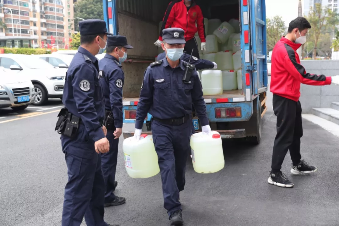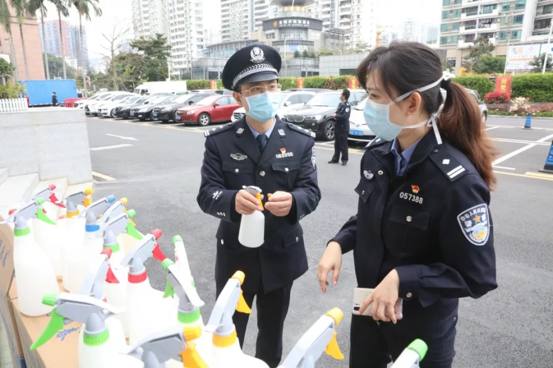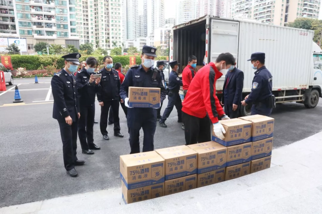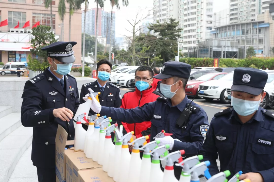 當天16時許,愛心企業(yè)代表肖先生帶著50桶20公斤消毒液、480瓶消毒酒精、20個噴壺來到了福田分局,捐贈給了福田警方。福田分局黨委委員、政治處主任桂禮強代表分局接收捐贈抗疫物資,并對愛心企業(yè)表示感謝。