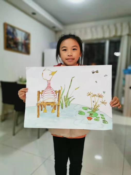 我們自由地花3-4個小時畫一幅畫,為武漢疫區(qū)孩子送去祝福,希望疫情早點過去,孩子們都像這只《自由的小鴨》一樣,在祖國的懷抱快樂地成長。