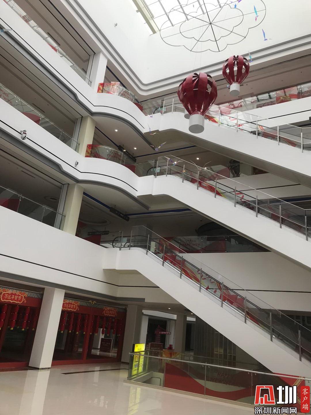 萬達(dá)廣場(chǎng)四層的商場(chǎng)里只有超市在營(yíng)業(yè)。