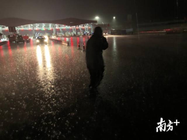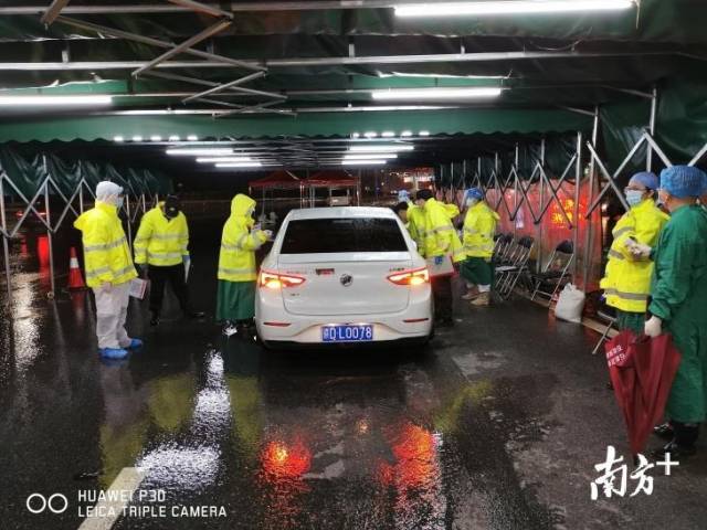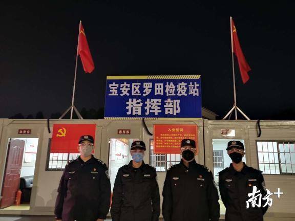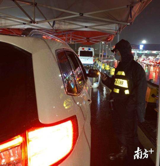 寶安區(qū)羅田檢疫站指揮部總指揮,石巖街道黨工委副書記、人大工委主任鄧亞虎,石巖街道副主任林志明和羅田交通聯(lián)合檢疫站臨時黨支部黨員冒雨檢查。當晚,深圳市公安局經偵支隊支援4名民警在現場冒雨防疫檢查。