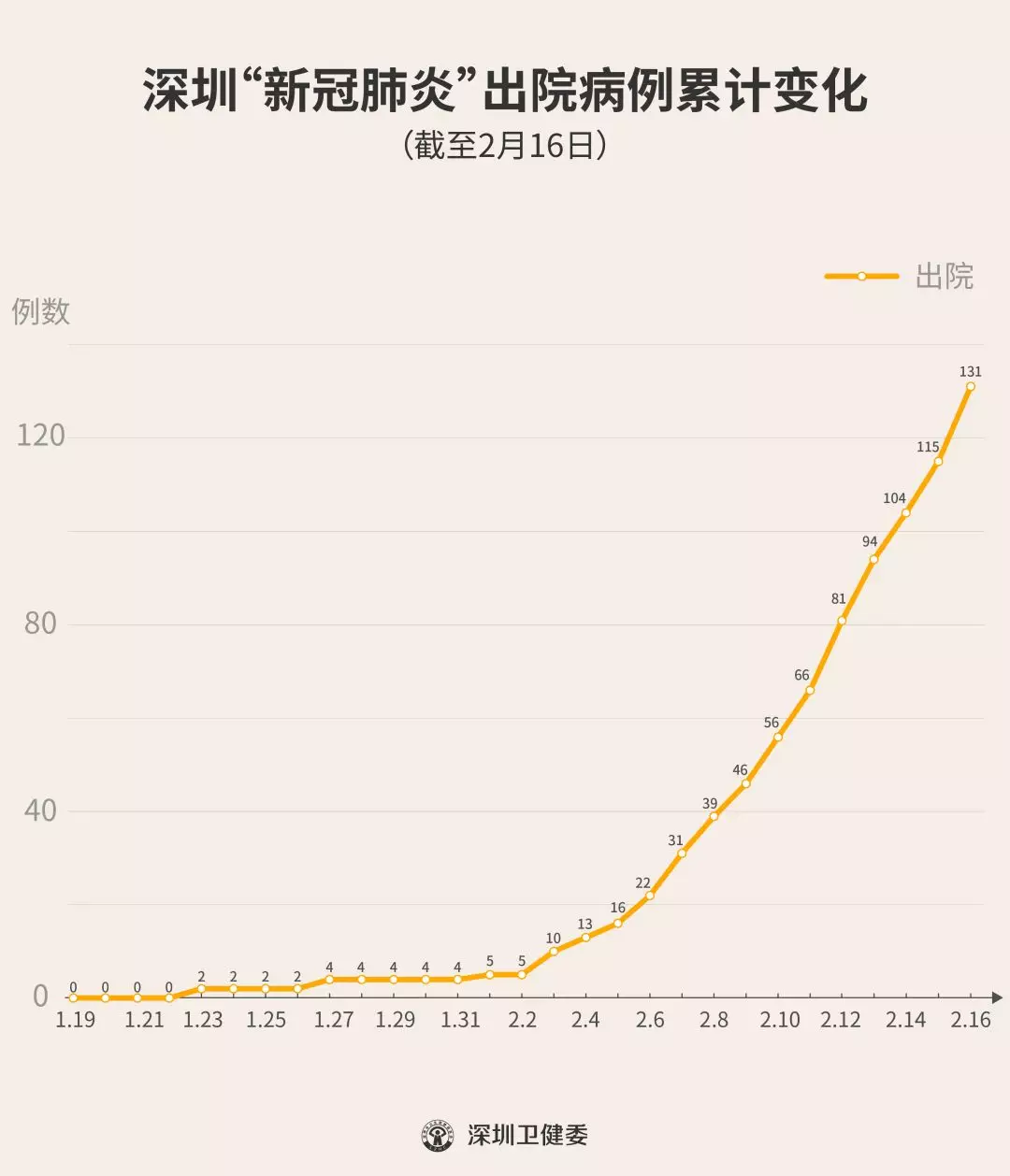 2月16日下午,經(jīng)專家組會診,深圳再有16名新型冠狀病毒肺炎確診患者出院,累計達(dá)131人,連續(xù)14天有人出院。