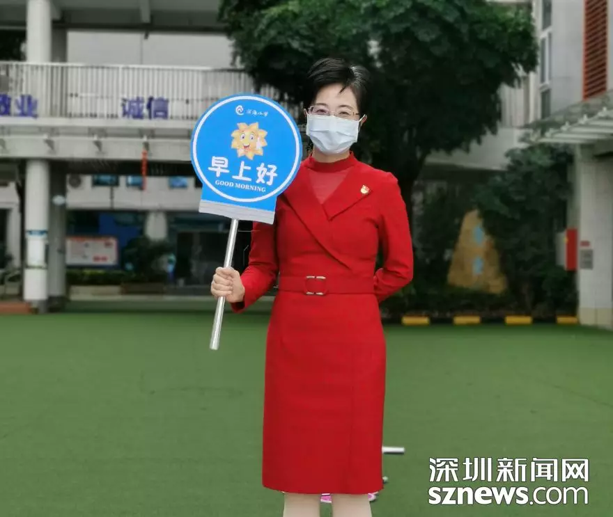 今日的“開學(xué)典禮”雖不同往日,校園里空蕩蕩,沒有師生的到來,但寶安區(qū)濱海小學(xué)的校園門口依舊出現(xiàn)了一個熟悉的身影,她用這種特殊的方式迎接孩子們開學(xué)的第一天,“早上好”“你真棒”,這溫情的話語是李桃輝校長給每一位師生的問候。