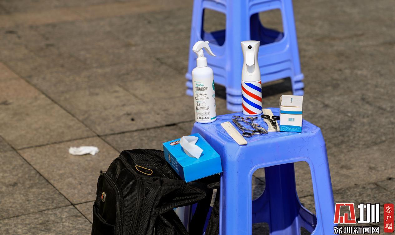 記者在現(xiàn)場注意到,在松崗街道星港城志愿服務(wù)U站前,共設(shè)置了四個座位,每個座位旁都配備了剪刀、電推、梳子等簡單的理發(fā)工具,由于義剪服務(wù)都設(shè)在空氣流通順暢的空闊室外,理發(fā)設(shè)備只能從簡。此外,每個座位還配有酒精噴霧、酒精棉片等消毒用品。據(jù)現(xiàn)場理發(fā)師介紹,他們每為一位工作人員剪完頭發(fā)后,都會對所有使用過的理發(fā)工具進行消毒。