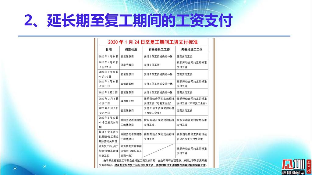 見圳客戶端?深圳新聞網(wǎng)2020年2月18日訊(見圳客戶端、深圳新聞網(wǎng)記者 焦慧茹)疫情影響了社會(huì)的方方面面,給企業(yè)和職工帶來(lái)了新的問題。對(duì)于廣大職工而言,擔(dān)心的是疫情期間工資發(fā)放、復(fù)工安排等。對(duì)于企業(yè)而言,擔(dān)心的是如何順利復(fù)工復(fù)產(chǎn)。為此,深圳市總工會(huì)聯(lián)合深圳新聞網(wǎng)推出“復(fù)工防疫微課堂”第六期,邀請(qǐng)講師楊文浩,分析、整理了疫情之下企業(yè)復(fù)工用工防范要點(diǎn),幫助大家解決困惑。