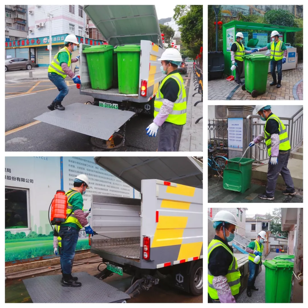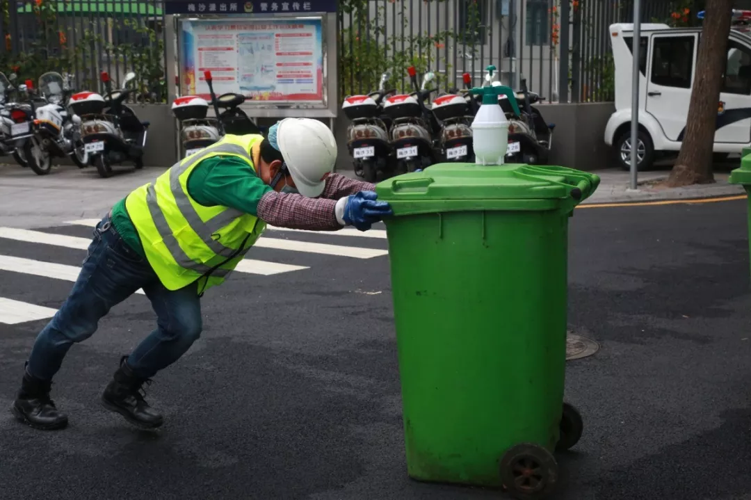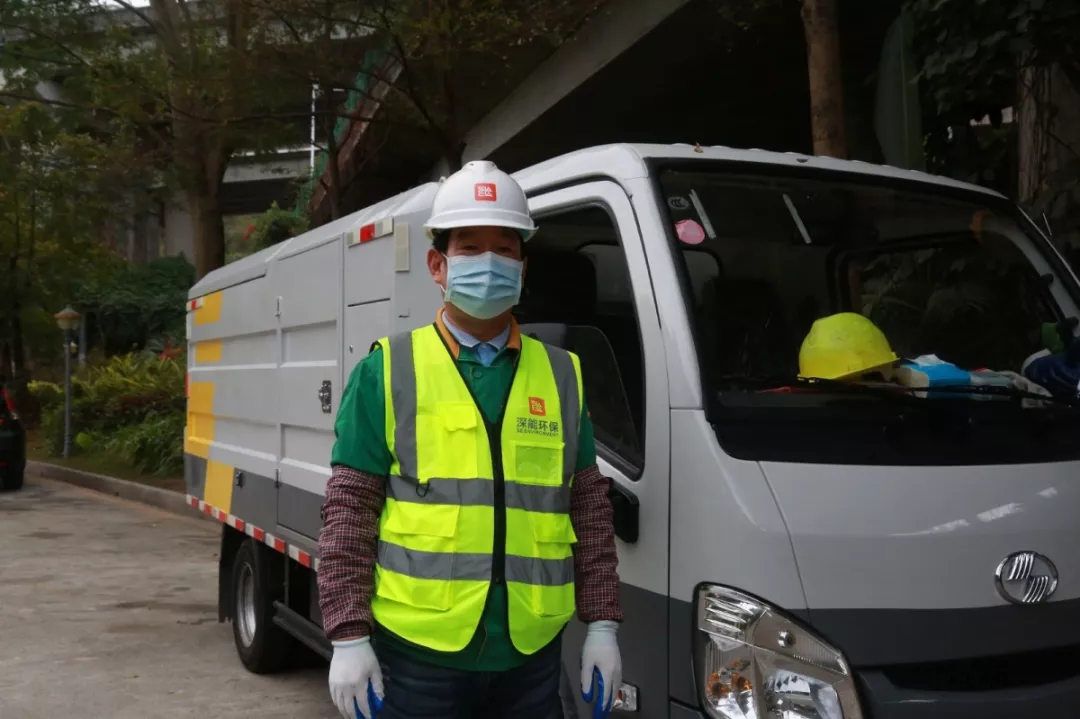 上午7點(diǎn)半,第一個(gè)到崗的田夫珍開始測量體溫,消毒后穿上印有“深能環(huán)保”的馬甲,戴上安全帽,檢查車輛消殺情況。8點(diǎn)整,他和14名同事一起出發(fā),分赴鹽田7條線路,開始和餐廚垃圾打交道。
