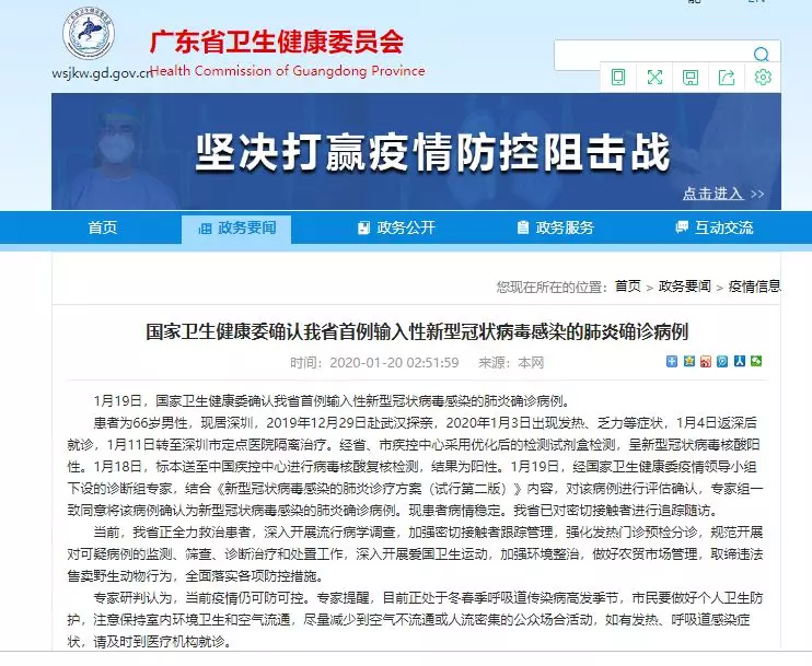 1月19日,國家衛(wèi)生健康委確認(rèn)廣東省首例輸入性新型冠狀病毒感染的肺炎確診病例。