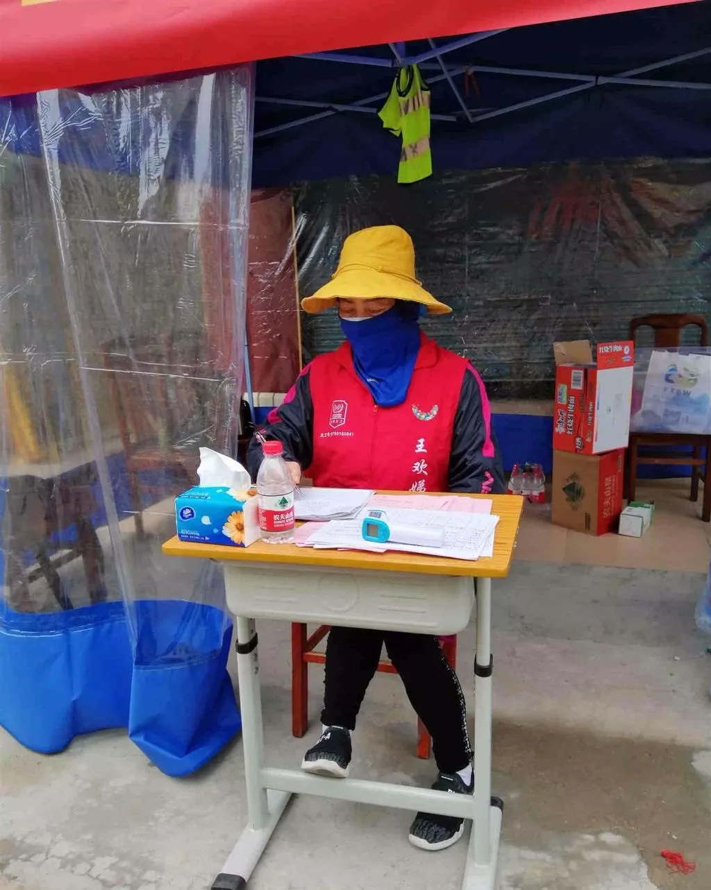 在龍崗區(qū)平湖街道力昌社區(qū)防控防疫卡點(diǎn),一名身著紅馬甲的志愿者忙個(gè)不停。雖然她的臉被口罩、帽子遮得嚴(yán)嚴(yán)實(shí)實(shí),但紅馬甲上寫(xiě)著得三個(gè)大字透露了她的身份:王歡娣。