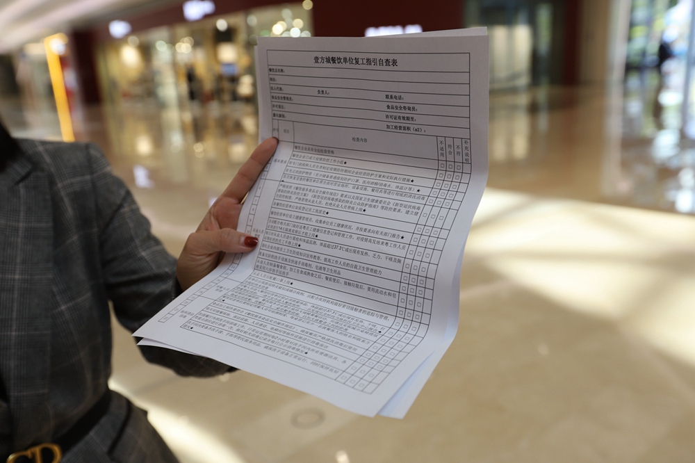 記者了解到,在商戶管理方面,壹方城每日管控商戶員工體溫,并及時測量登記;全場統(tǒng)計商戶員工動向,針對疫情重點地區(qū)員工給予重點跟蹤,要求其在家隔離14天,復工需申請審核;制定統(tǒng)一復工管理標準,要求商戶按照要求進行復工防疫準備;開展商戶日常防疫相關(guān)培訓,提升商戶員工防疫意識;全體商戶員工掃碼登記個人信息。