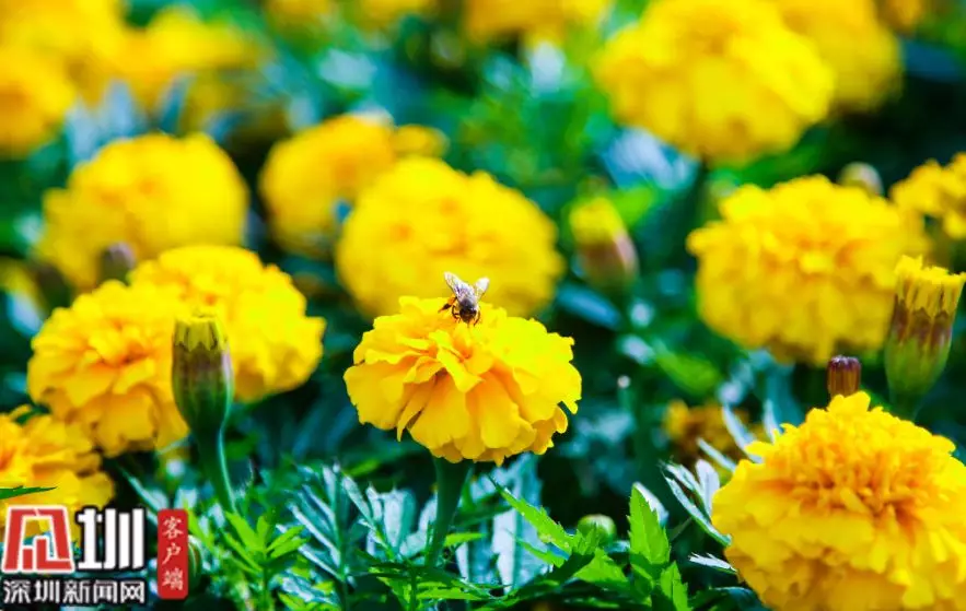 百花爭(zhēng)艷的蓮花山公園,惹來(lái)了忙著采蜜的蜜蜂。