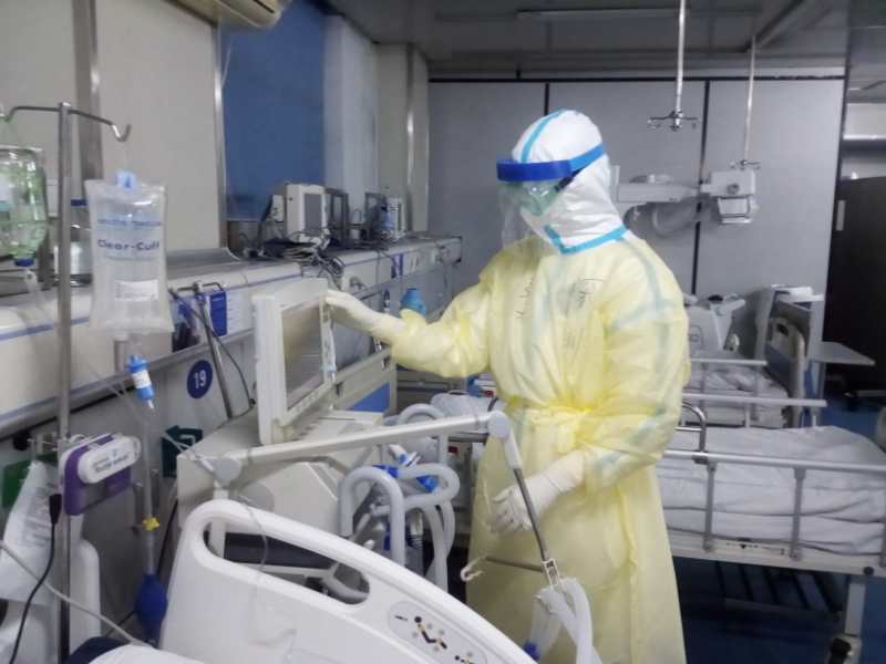 醫(yī)生在病房?jī)?nèi)照顧病人